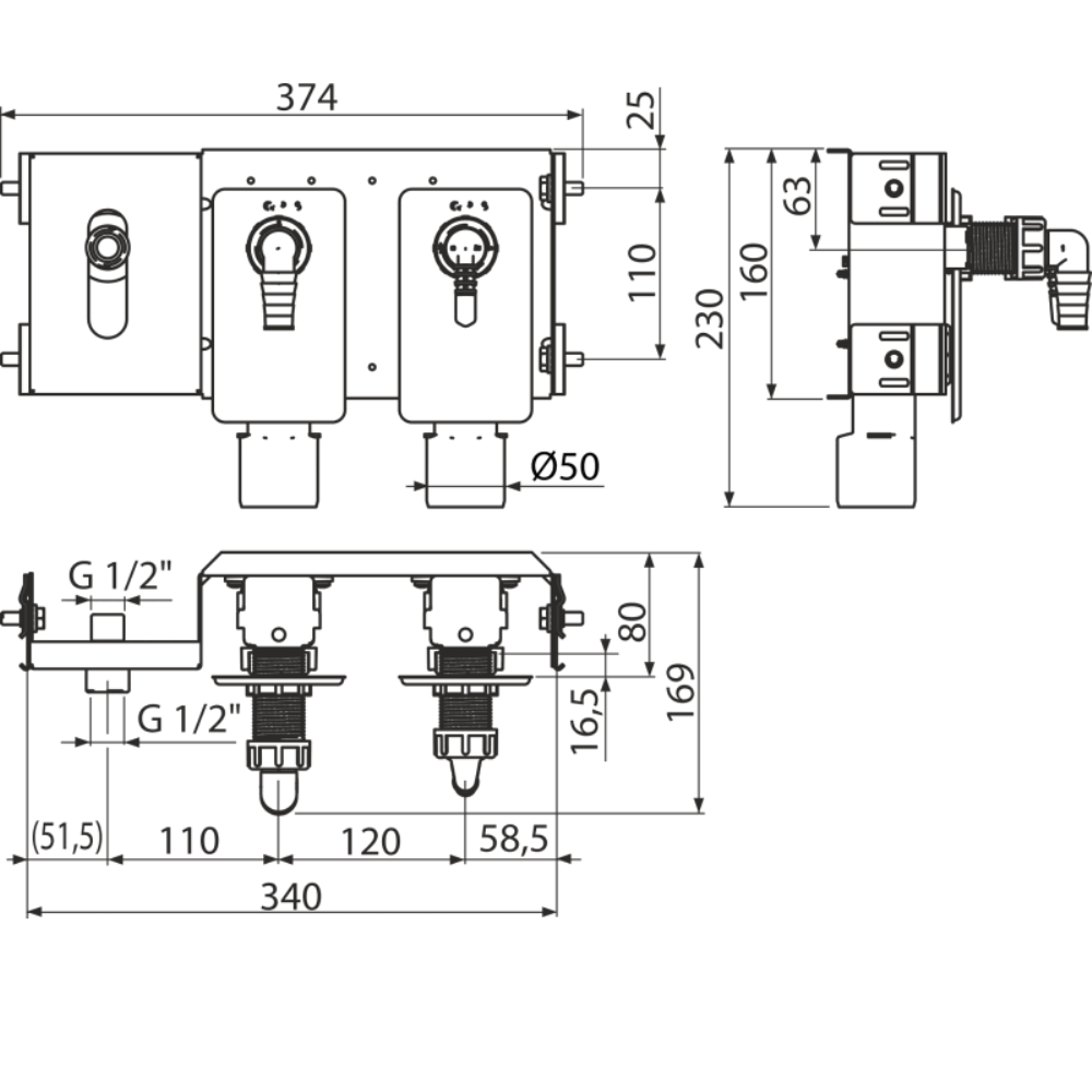 Рама инсталляции Alcadrain AlcaSystem для сифона для подключения двух потребителей AS-P024